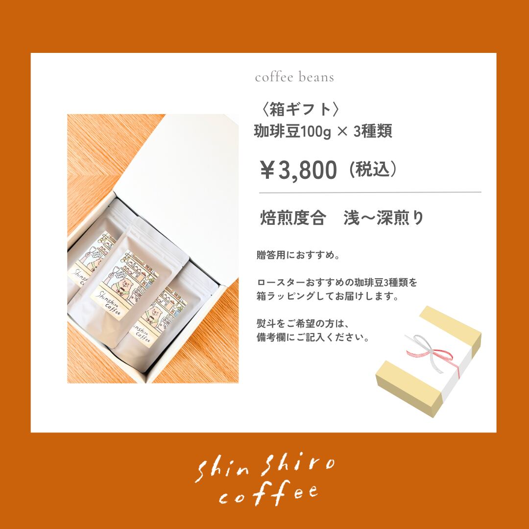 ロースターが選んだシングルオリジン3種類の豆(※コロンビア エルパライソを除く)を箱ラッピングしてお届けいたします。