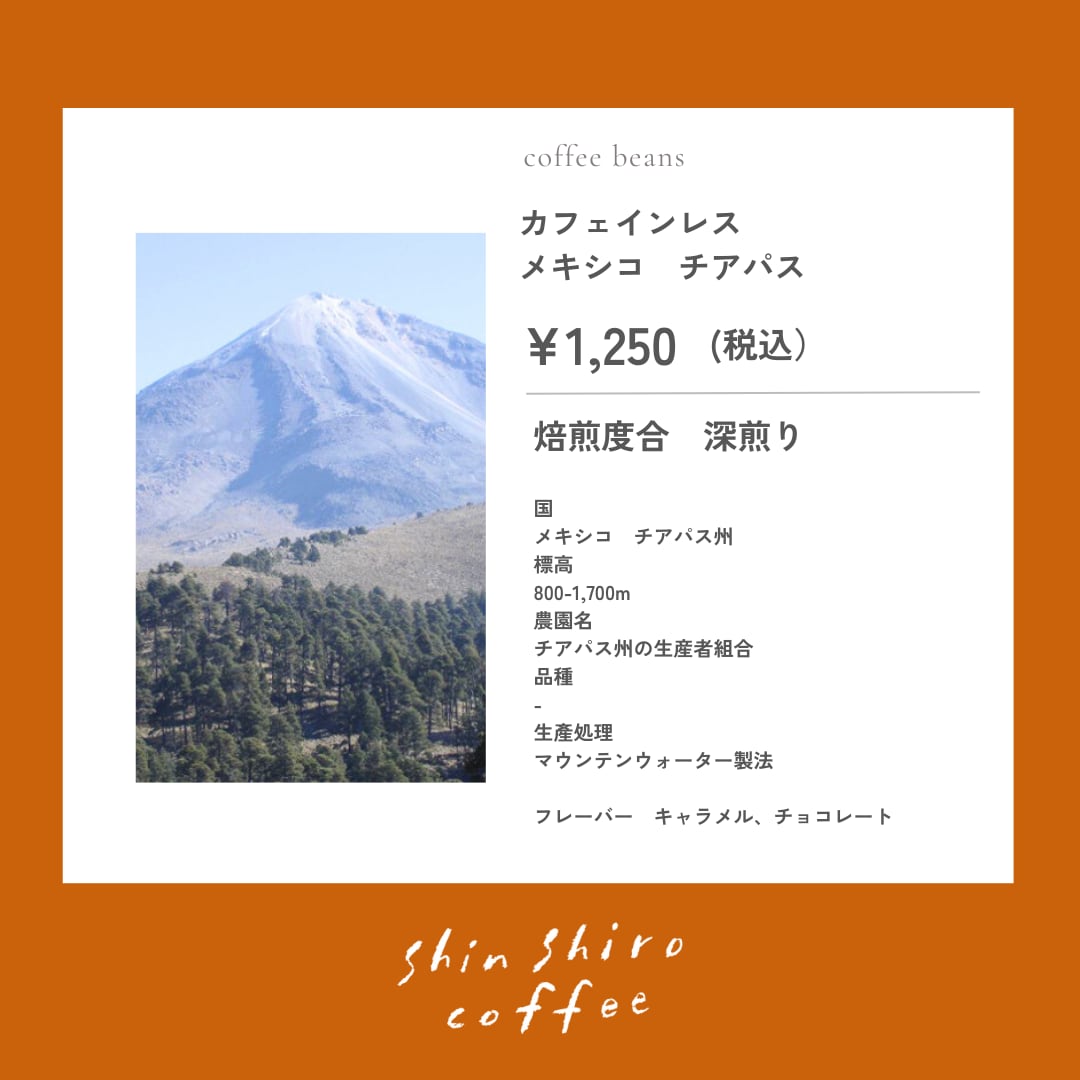 メキシコ/チアパスらしい綺麗な風味特性、長い余韻がそのまま感じることができる今までにない有機JASデカフェコーヒーになります。